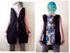 Блуза- елек с авторски принт . По-дълга предна част, като може да се носи и със завръзването на гърба, а илюстрацията отпред. Материал памучно трико, гарнитура - плетен PVC.