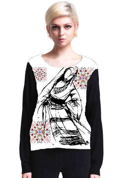 Блузон с авторски принт . Материал предна част - плетено PVC, неразтегливо, немачкаемо. Гръб - разтеглива материя - трико 95 % памук, 5 % еластан.  Може да се поръча в размер S,M,L.XL,XXL. Време за изработка 7 дена. Стандартна  дължина около ханша