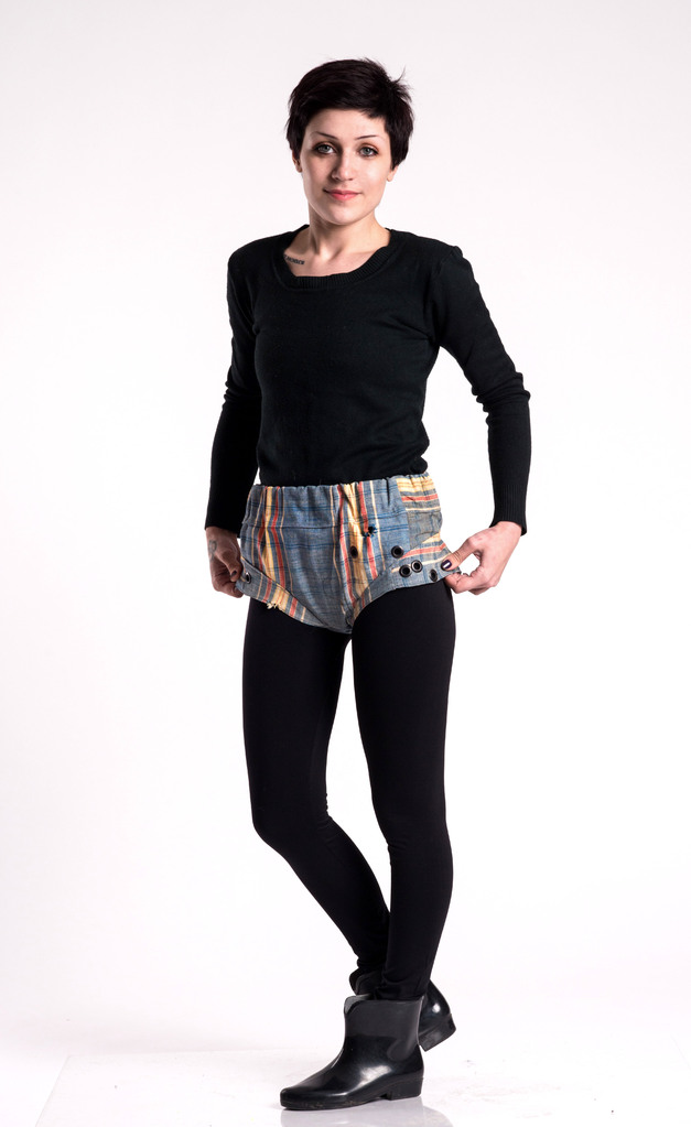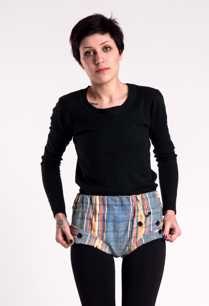Дамски къси панталонки, украсени с капси. Плат тип деним от 100% памук с избелващ ефект. Комплект с блуза Daisy's Blouse. Отделните части на ансамбъла могат да се носят с клин или самостоятелно за летните дни.