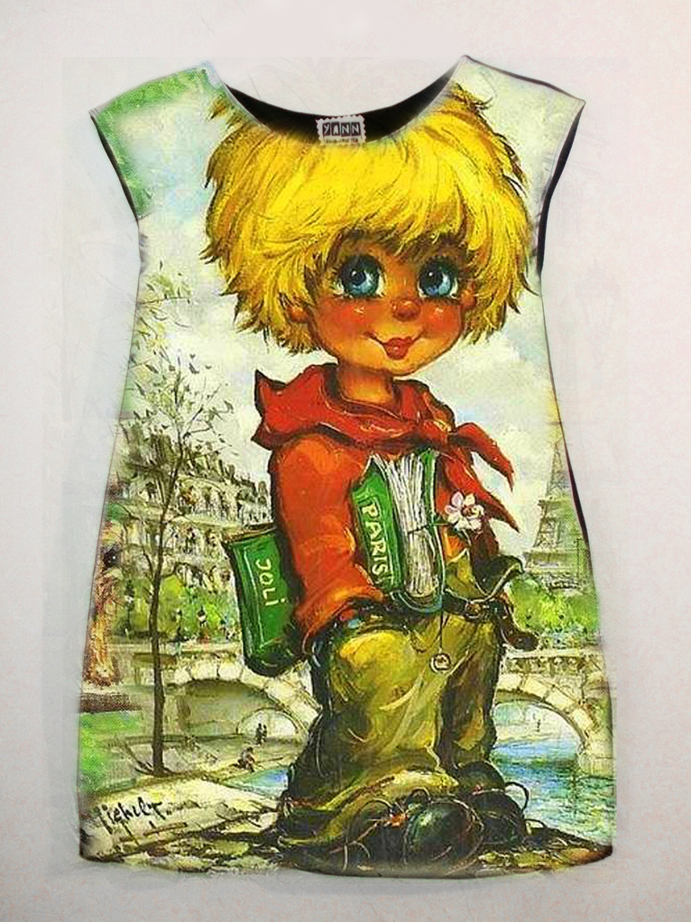 Детска рокля с принт рисунка Мichel Тhomas. . Moля попълнете мерките в обозначенит полета. Полето дължина се отнася за дължината на роклята, измерена от рамото.