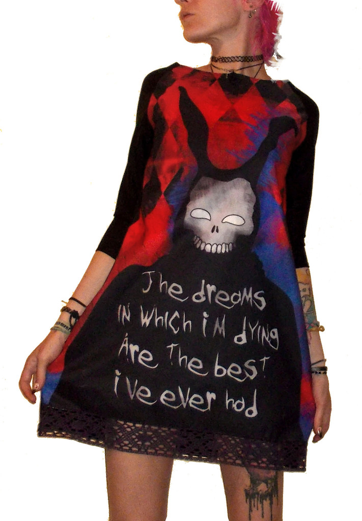 Рокля с  реглан ръкав . Материал предна част - принт полиестер, неразтеглив, немачкаем/ плътност - като тънък деним/. Гръб -