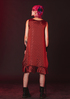 Романтична рокля без ръкав . Материал предна част - принт полиестер, неразтеглив, немачкаем/ плътност - като тънък деним/. Гръб - по- тънък плат тип сатен . В долната част украса волан. Роклята има тънко коланче което може да се завързва отзад.