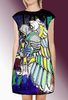 Рокля с авторски принт . Материал предна част - принт полиестер, неразтеглив, немачкаем/ плътност - като тънък деним/. Гръб - разтеглива