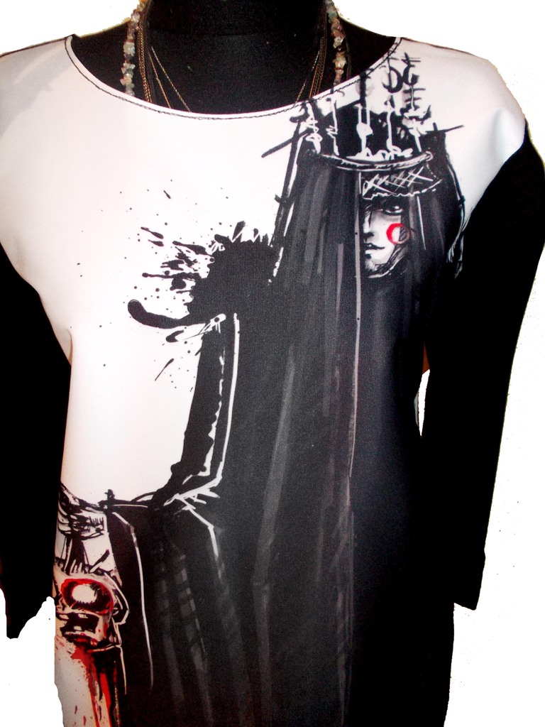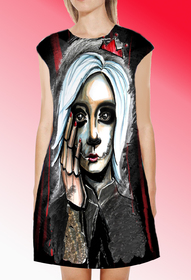 Рокля Туника с Авторска Щампа Черна Кралица - дълъг ръкав