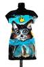 Материал предна част полиестър твърд, неразтеглив  имитира деним. Гръб черно трико 95% памук,5% еластан.