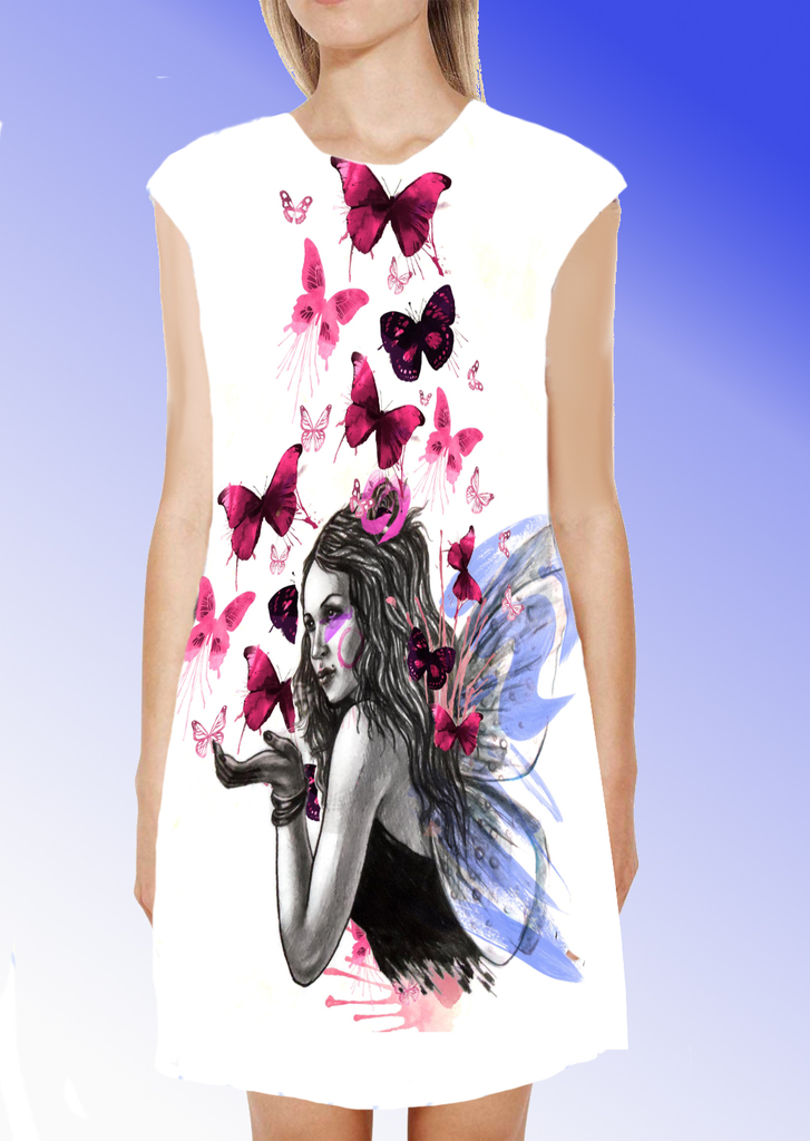 Рокля Туника с Авторска Щампа Момиче и Пеперуди