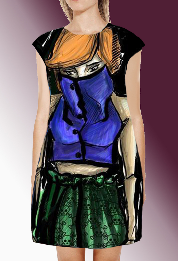 Рокля Туника с Авторска Щампа Момиче със Синя Блуза