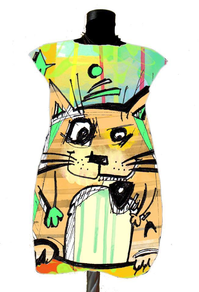 Рокля Туника с Авторска Щампа Коте Разбойник