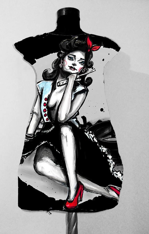 • Dress with Print Lady with Red Shoes