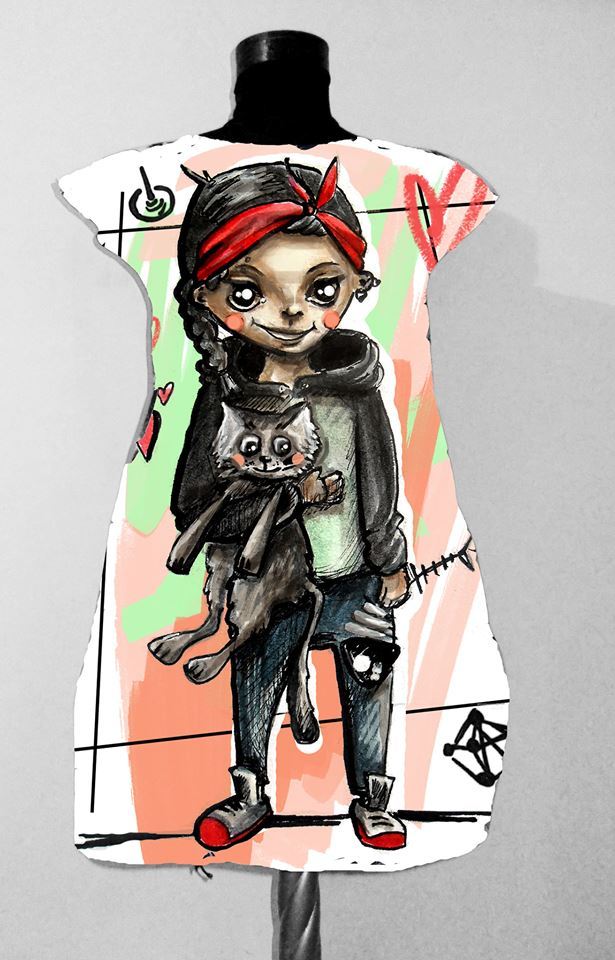 Рокля с авторски принт . Материал предна част - принт полиестер, неразтеглив, немачкаем/ плътност - като тънък деним/. Гръб - разтеглива