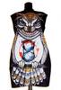 Материал предна част полиестър твърд, неразтеглив  имитира деним. Гръб черно трико 95% памук,5% еластан.