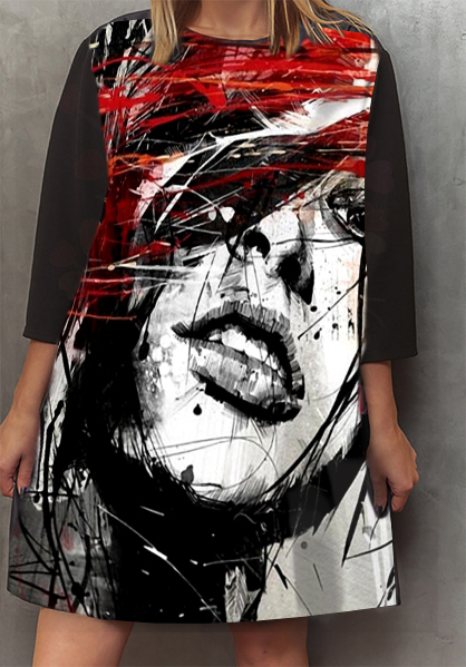 Рокля с авторски принт . Материал предна част - принт полиестер, неразтеглив, немачкаем/ плътност - като тънък деним/. Гръб и ръкави - разтеглива