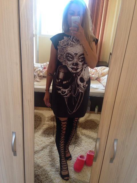 Материал предна част полиестър твърд, неразтеглив  имитира деним. Гръб черно трико 95% памук,5% еластан.