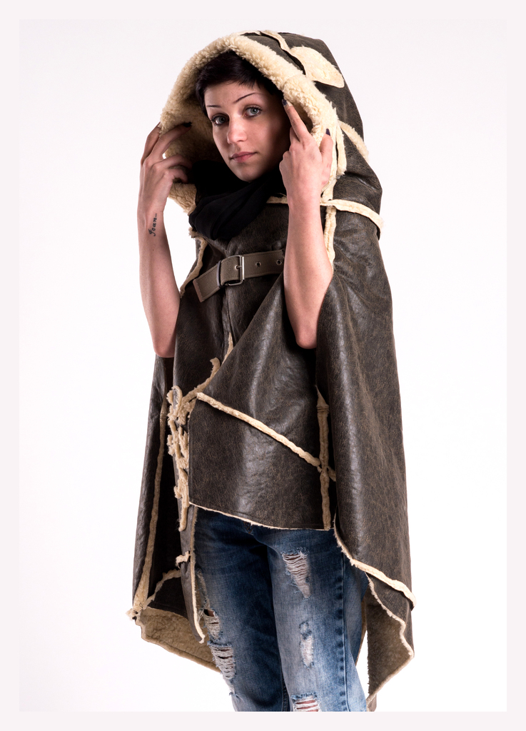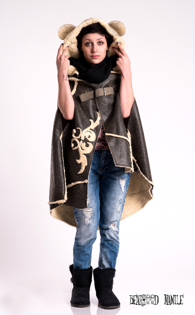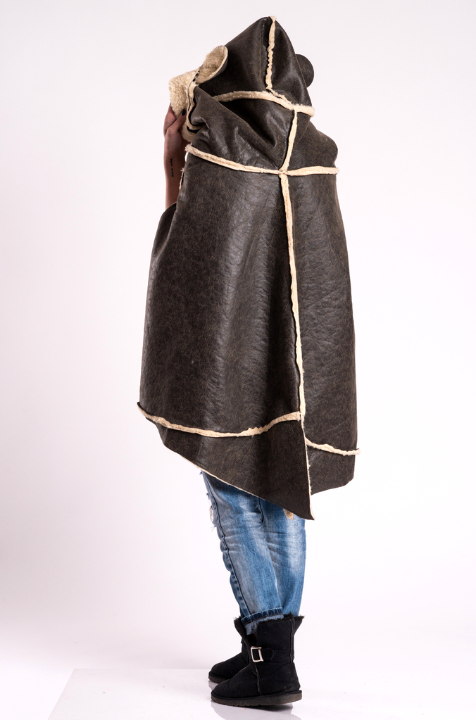 "Bearhood" mantle of eco-leather with baroque ornamets.