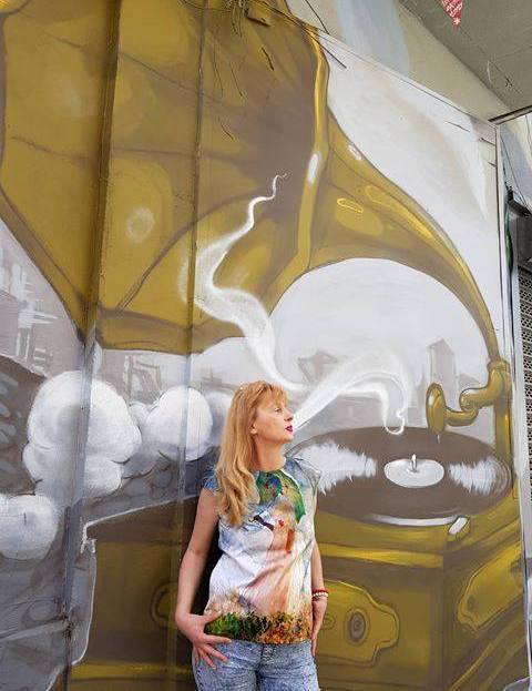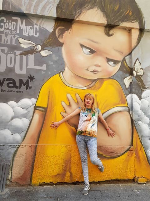 Dress with  print in front. It can be worn with leggings or shorts.