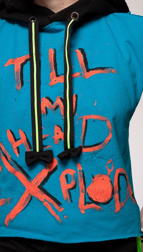 Hoodie with hand-painted writting. Material - cotton jersey fabric.