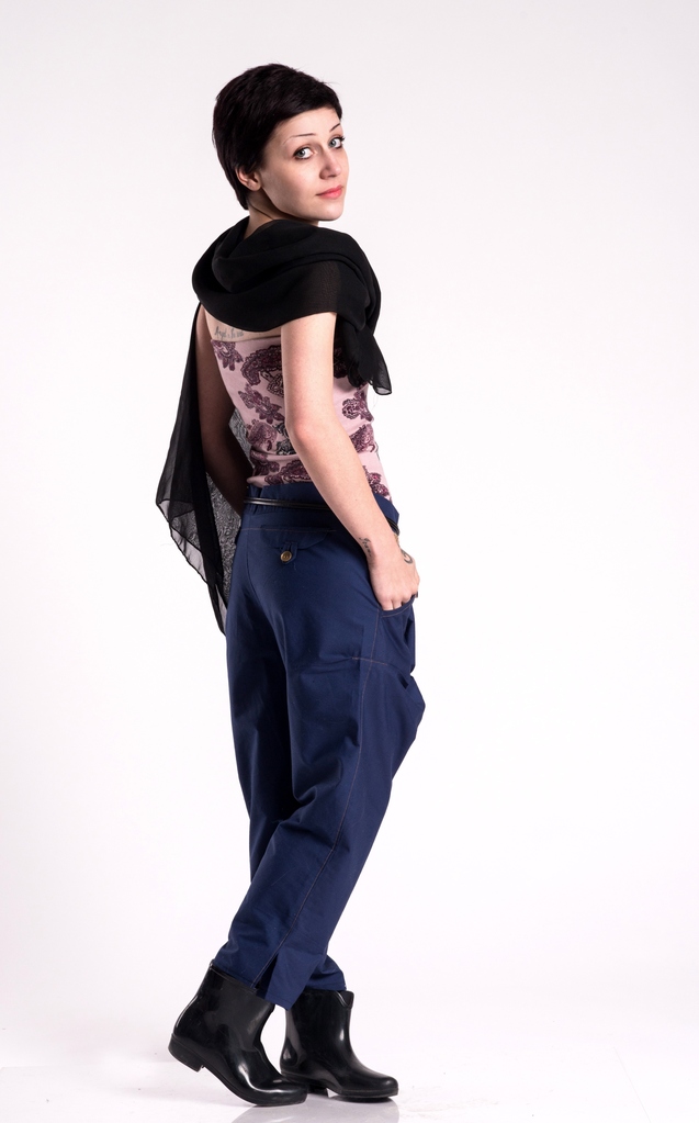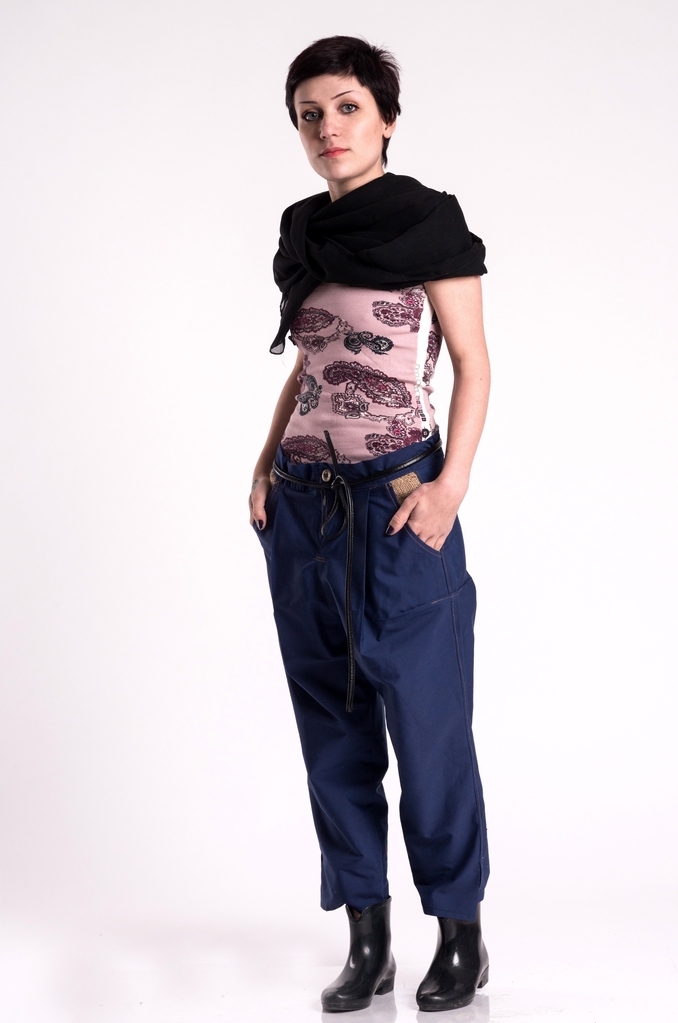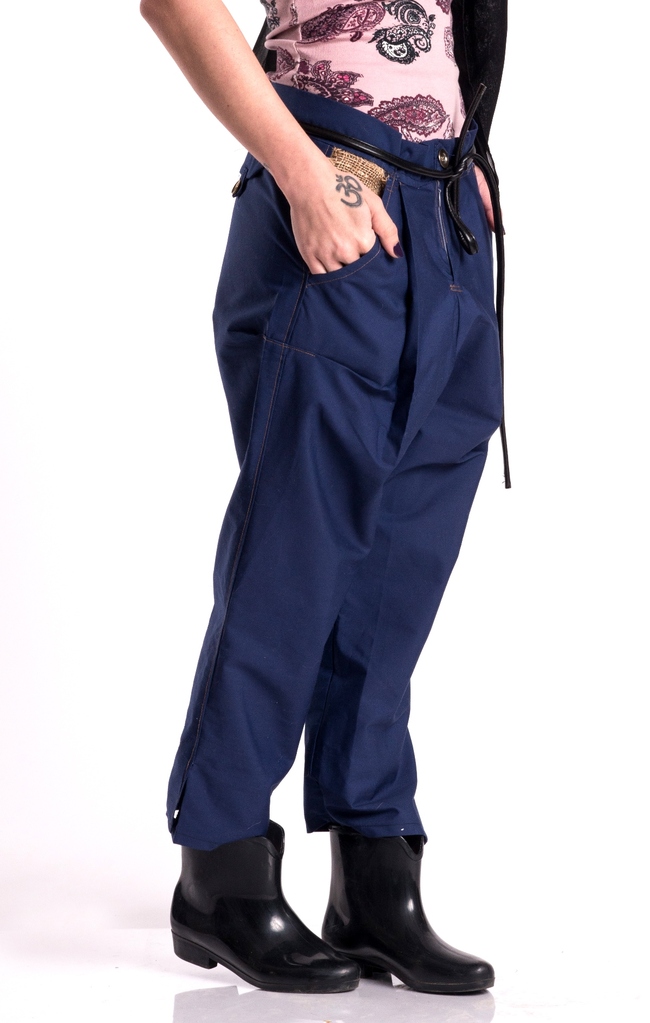 Blue baggy pants from thick cotton fabric. Out of stock.