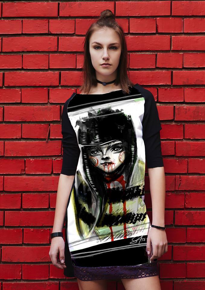 Back and sleeves are from cotton jersey fabric, opaque, 260 g/m2, stretchable. Printed area is Backlit Textile Polyester, opaque, semi-gloss,260 g/m2, slightly stretchable.