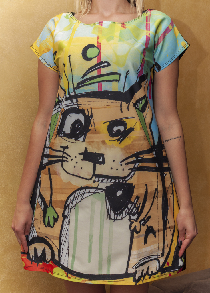 • Dress with Print Graffiti Cat