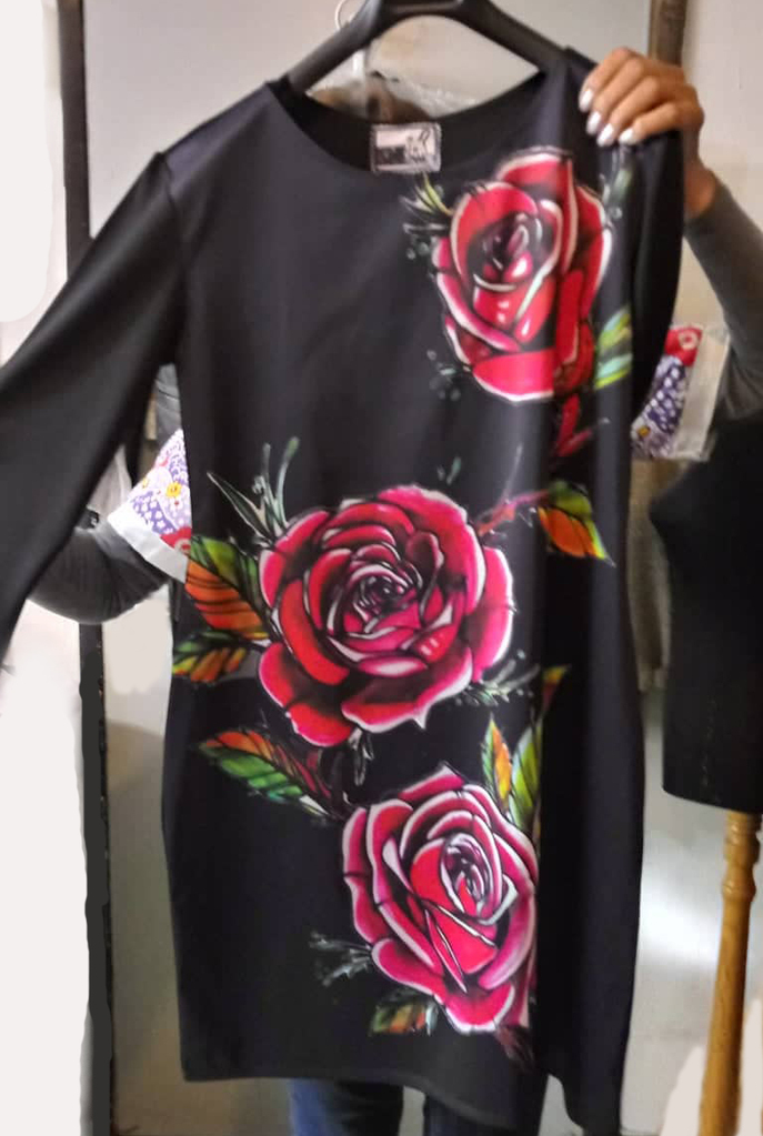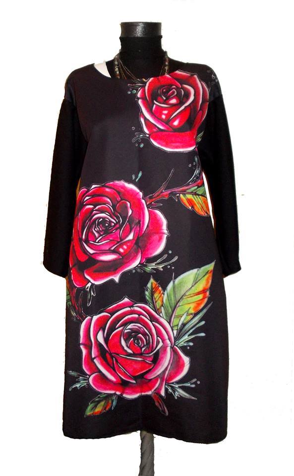 • Dress with Print Red Roses - long sleeve