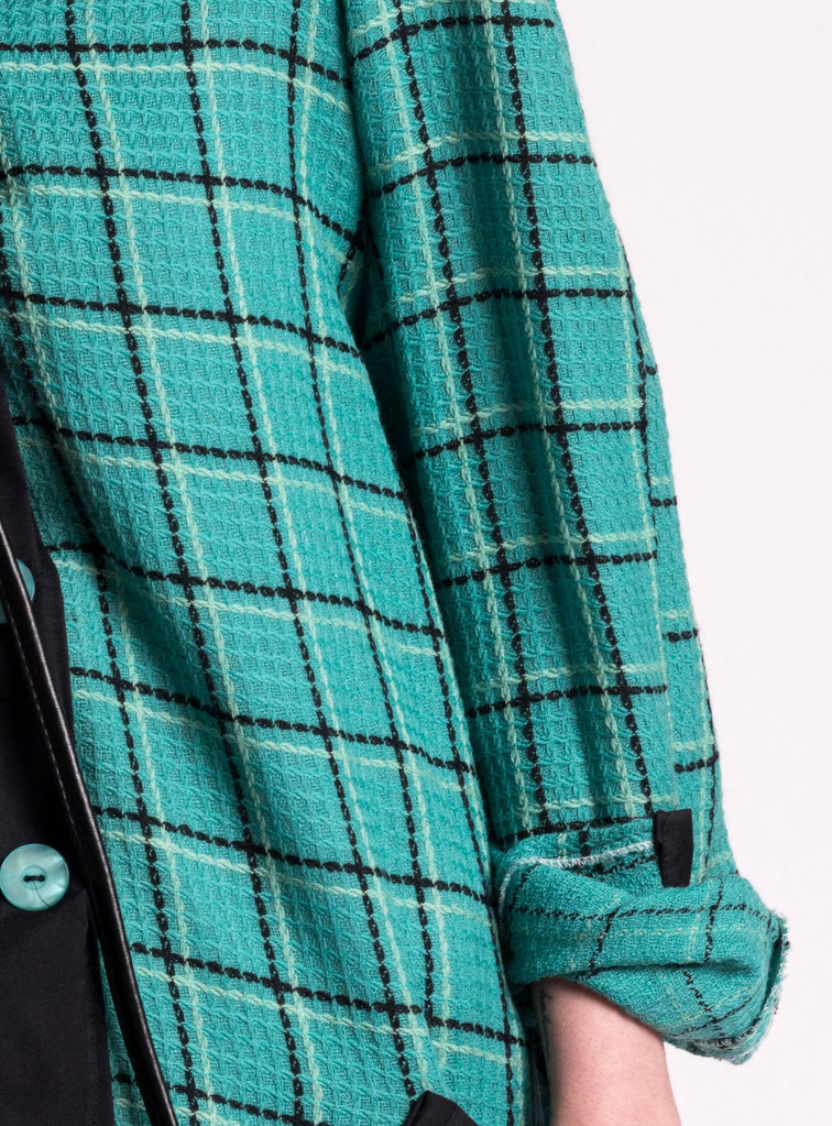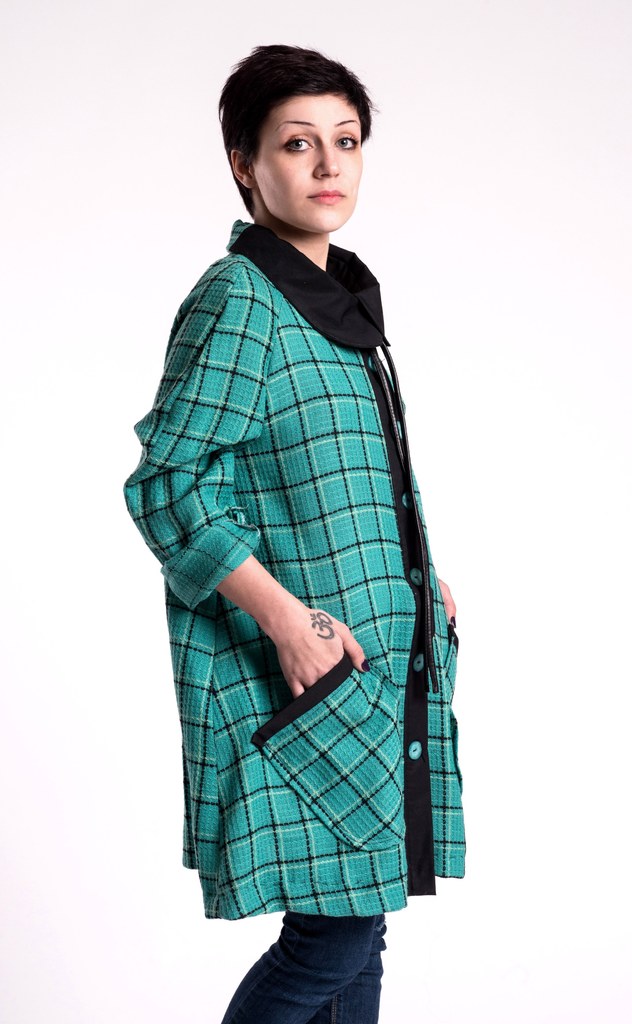 Cute checkered dress with buttons. 100% wool and cotton. Out of Stock
