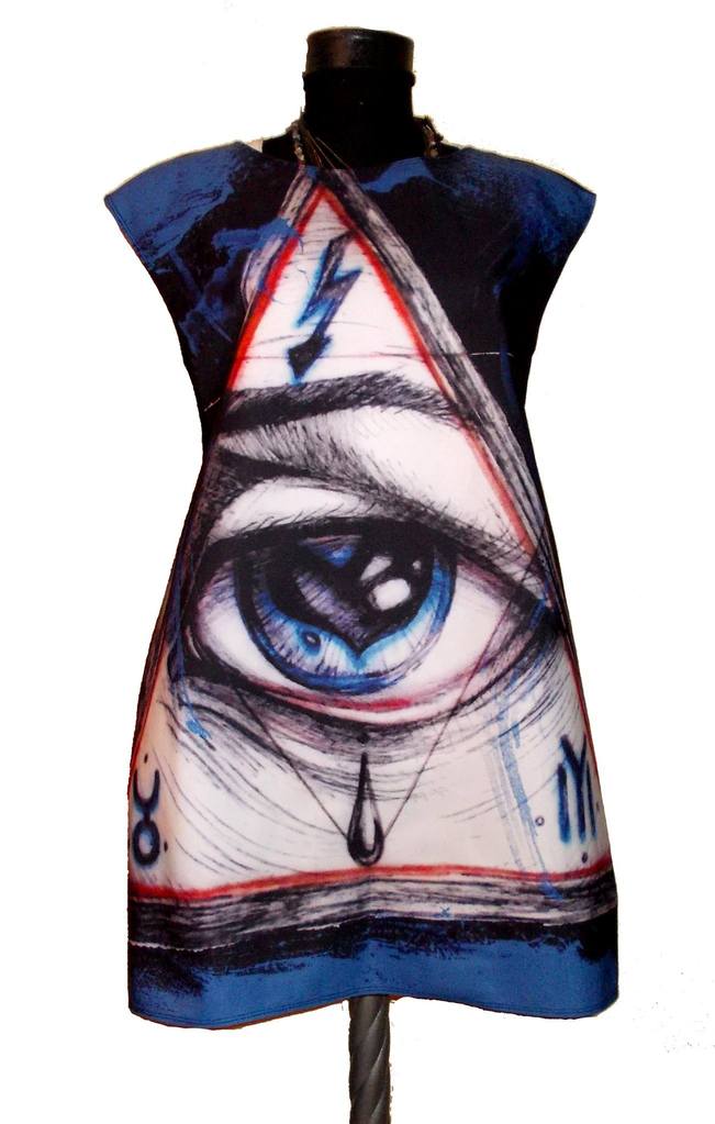 Handcrafted short dress/tunic with original art digitally printed on it. Material : back - cotton jersey fabric, printed front - polyester, non-stretchable,imitates denim, 240 g/m2. This item can be ordered with 3/4 or long sleeves, if you want sleeves to be added , please specify in the field "another"