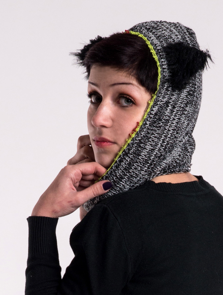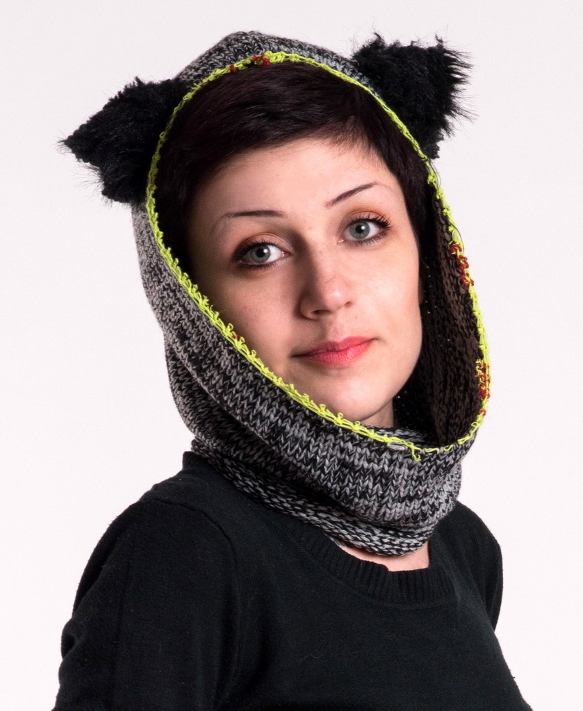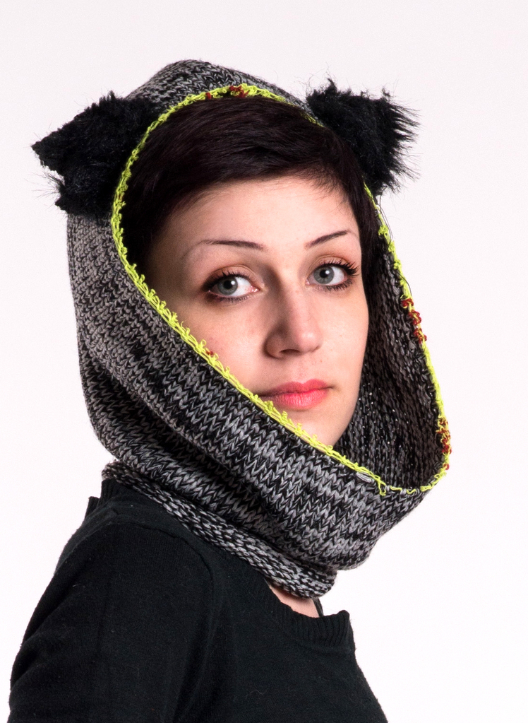 Knit hat with fluffy cat ears. A playful addition to  King Bird Sweater.