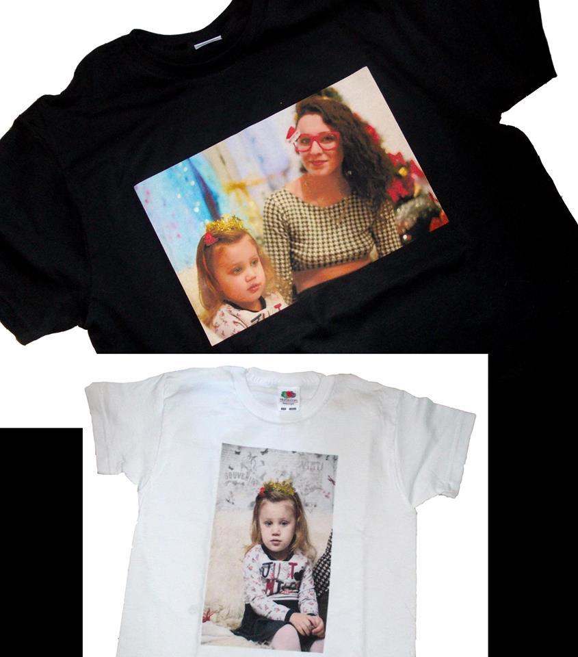 Custom made t-shirts with a photograph of your loved ones printed. 100% cotton.