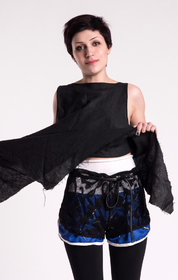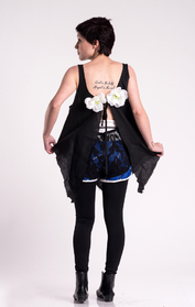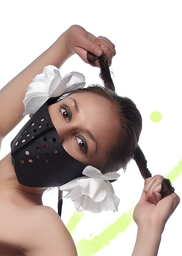 Маска от гумирана материя с бели цветя от плат. Екстравагантно допълнение към роклята Angel Dress.