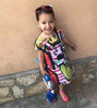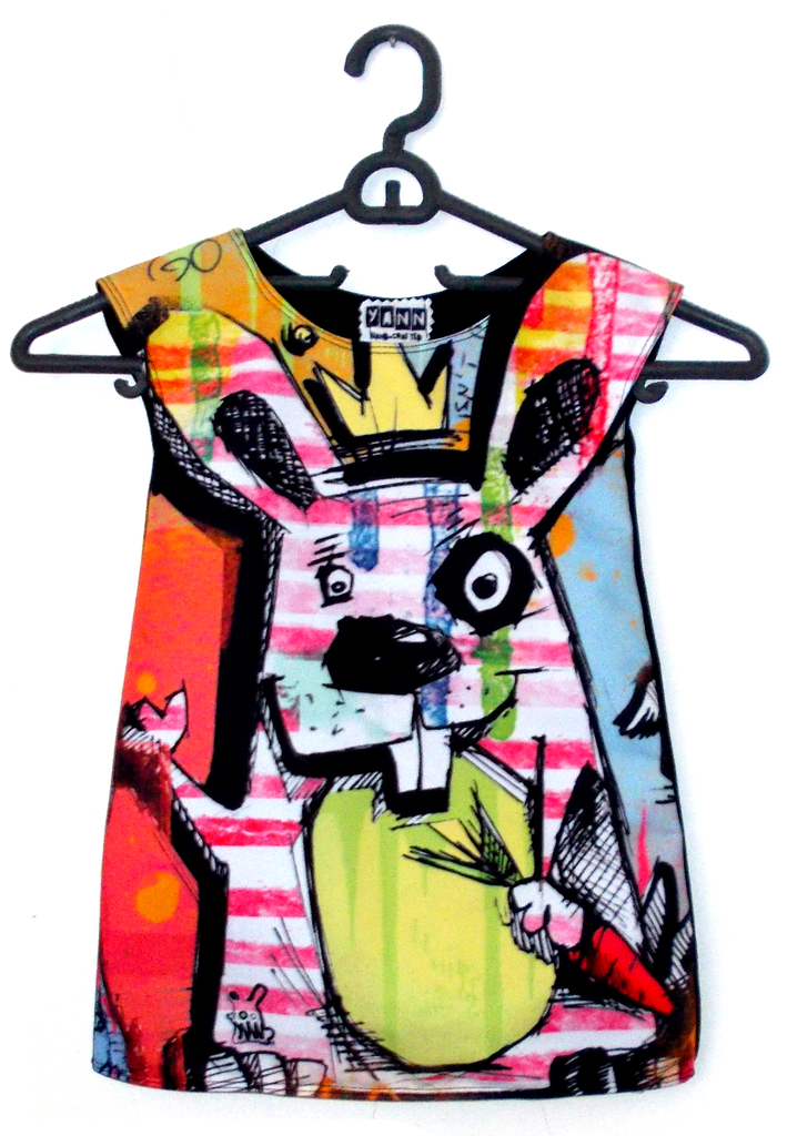 Детска рокля с авторски принт . Moля попълнете мерките в обозначенит полета. Полето дължина се отнася за дължината на роклята, измерена от рамото. В полето "друго" посочете желаете ли панделка на гърба.