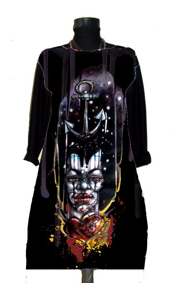 Рокля с авторски принт . Материал предна част - принт полиестер, неразтеглив, немачкаем/ плътност - като тънък деним/. Гръб - разтеглива