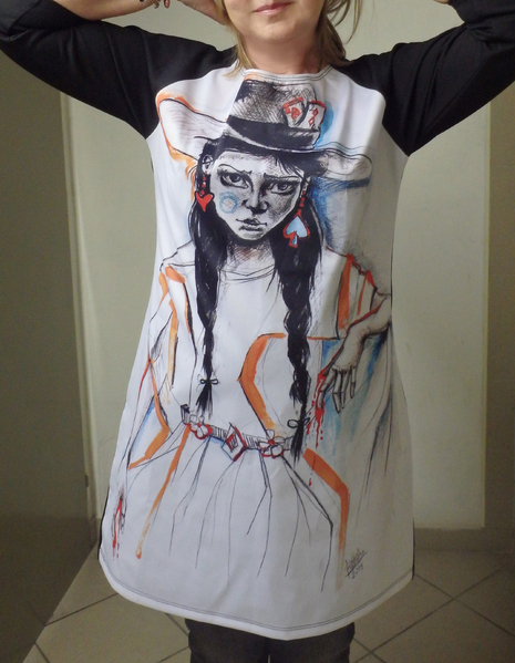 Рокля с авторски принт Alice in Wonderland с реглан ръкав