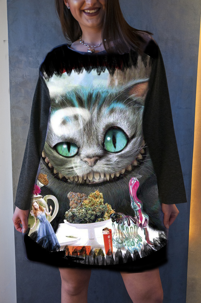 • Рокля с Принт Чеширски котарак II - дълъг ръкав