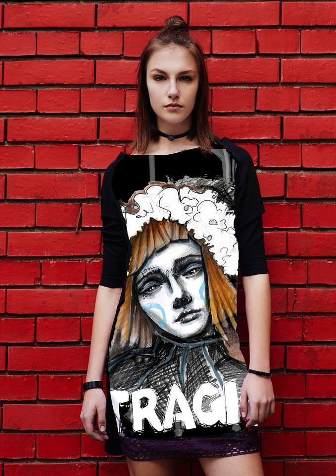 Рокля Туника с Авторска Щампа Tragic - 3/4 ръкав