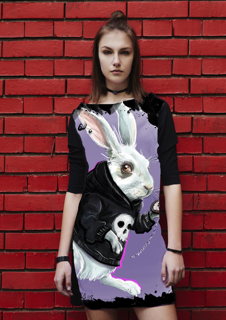 • Рокля с Принт White Rabbit - No Time - дълъг ръкав