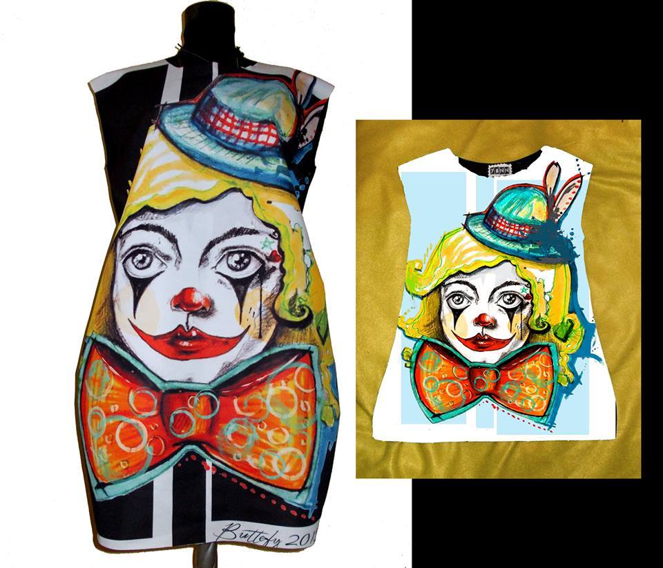 • Set Dresses for Mom and Child with Print Clown