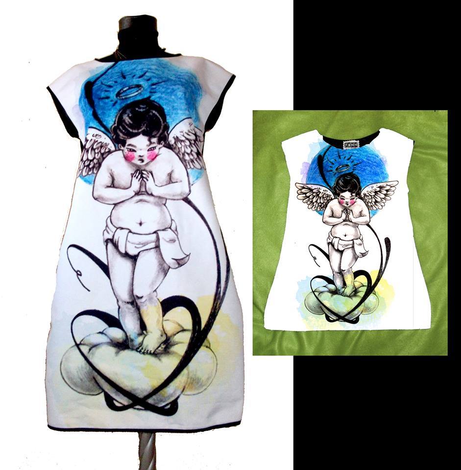 • Set Dresses for Mom and Child with Print Japanese Angel