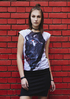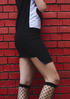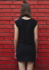 Къса рокля по тялото. Материал - гръб и долна част черно трико памук и еластан, отпред авторски принт от рисунка - синтетична материя, леко прозрачна