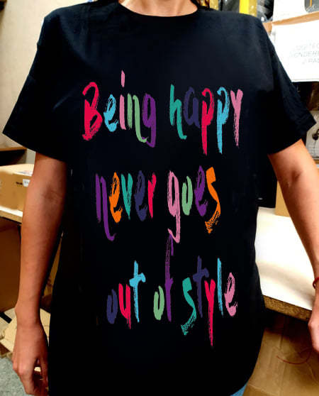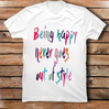 Тениска с принт Being happy never goes out of style . Вдъхновяващо послание Да бъдеш щастлив никога не е демоде!