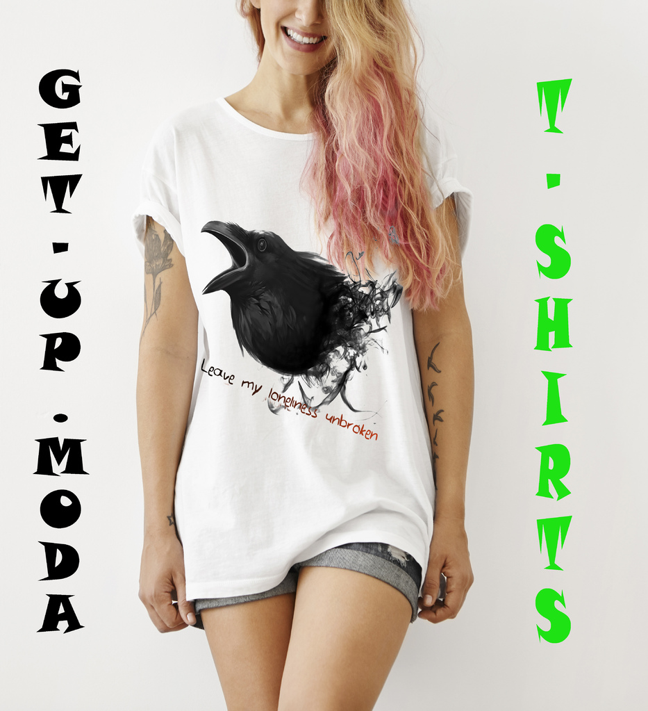 Дизайнерска тениска с авторска рисунка принт- Leave my loneliness unbroken - Цитата от поемата Гарванът на Едгар Алан По . В полето друго отбележете цвят на тениската.