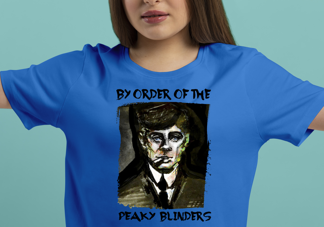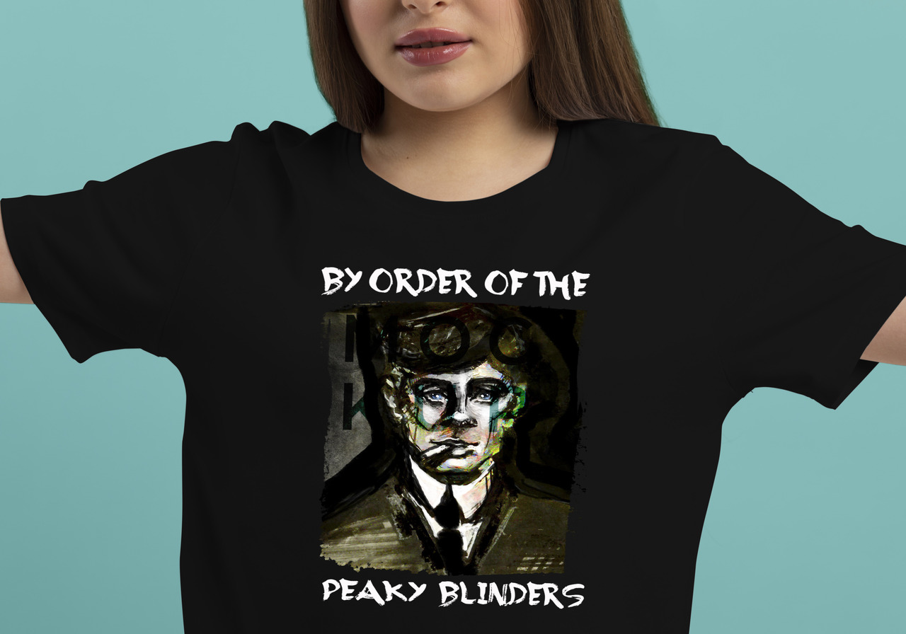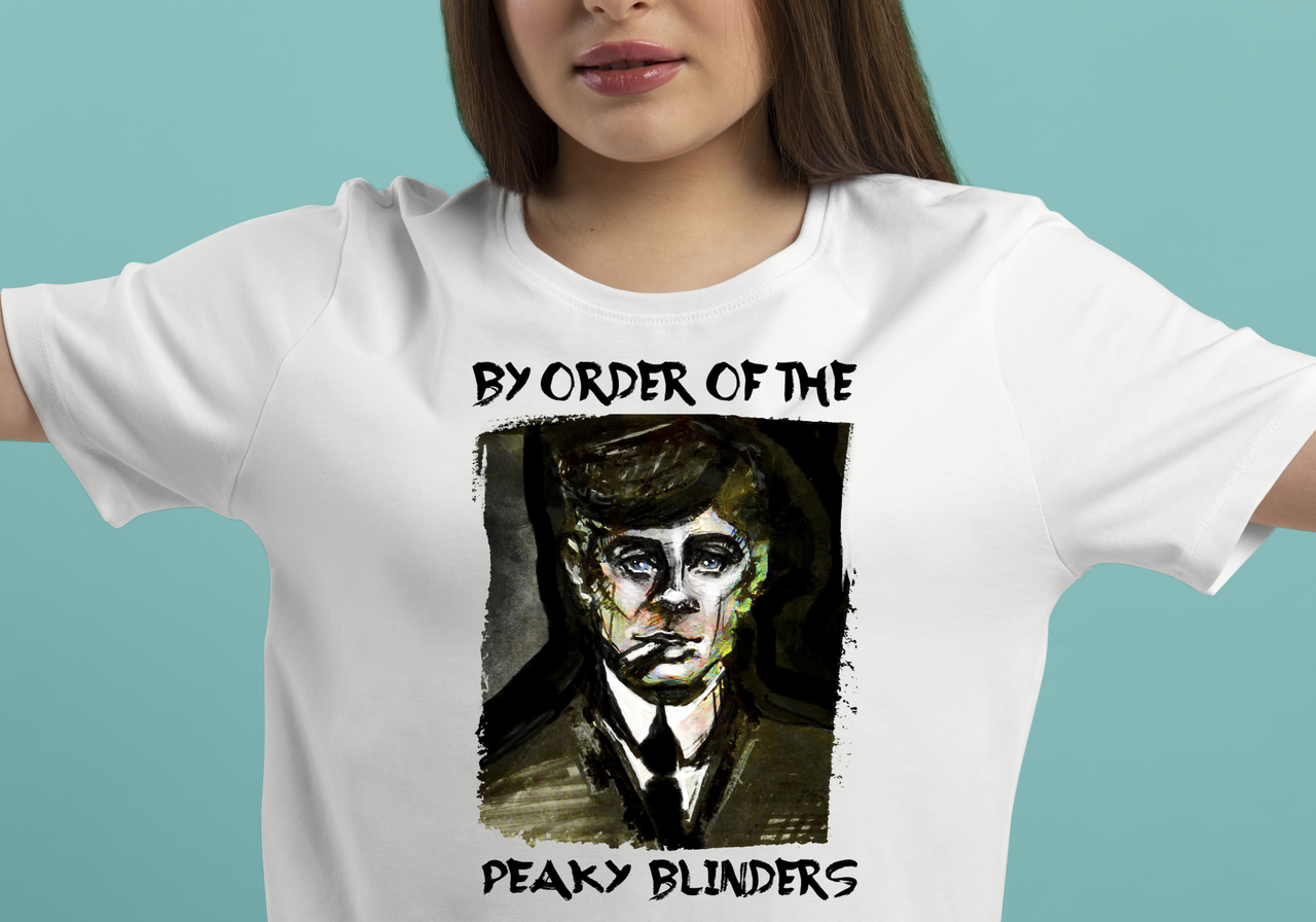 Дизайнерска тениска с авторска рисунка принт Thomas Shelby от сериала Peaky Blinders . Може да бъде изработена в друг цвят по желание. В полето друго отбележете цвета