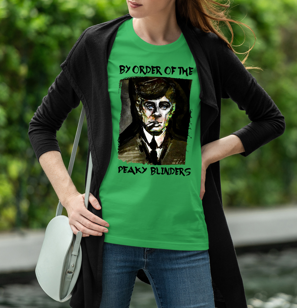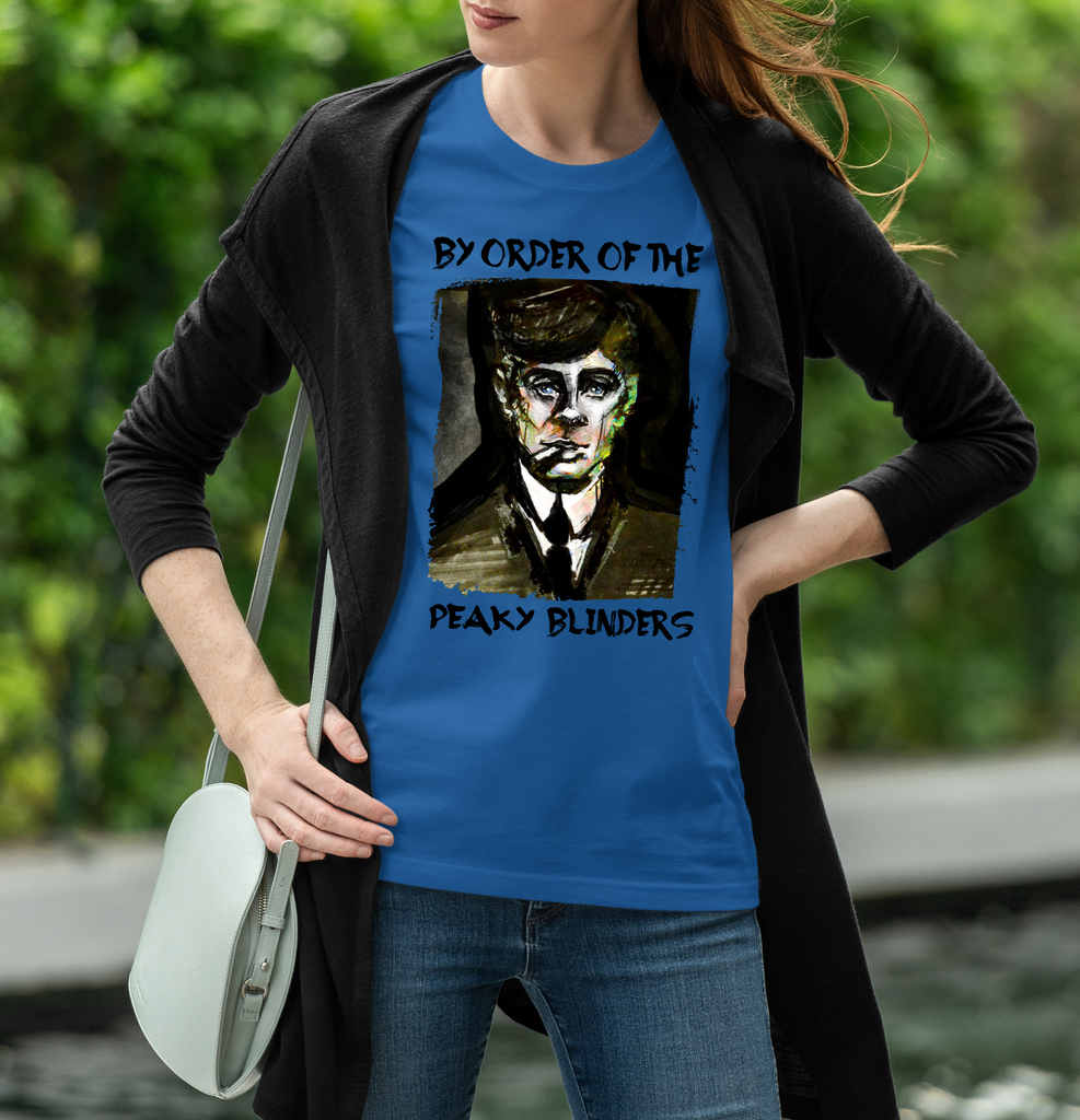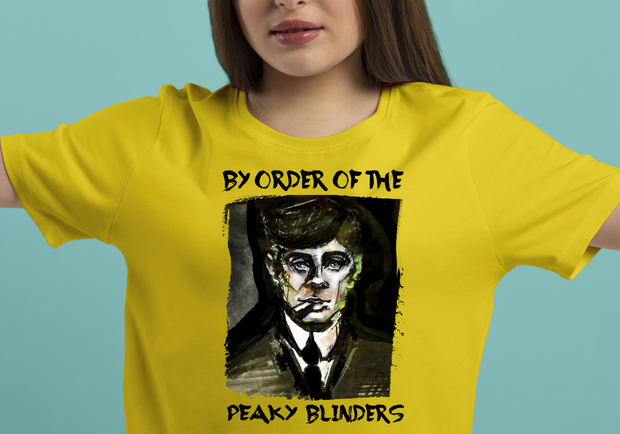 Дизайнерска тениска с авторска рисунка принт Thomas Shelby от сериала Peaky Blinders . Може да бъде изработена в друг цвят по желание. В полето друго отбележете цвета
