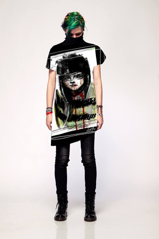 Туника - Рокля с принт . Материал предна част - принт полиестер, неразтеглив, немачкаем/ плътност - като тънък деним/. Гръб -