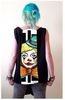 Блуза- елек  с авторски принт . По-дълга предна част, като може да се носи и със завръзването на гърба, а илюстрацията отпред. Материал  трико, гарнитура - плетен PVC.